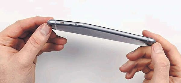 (當年因材質問題導致iPhone6Plus容易受力彎曲,圖片來源:etnet。)
