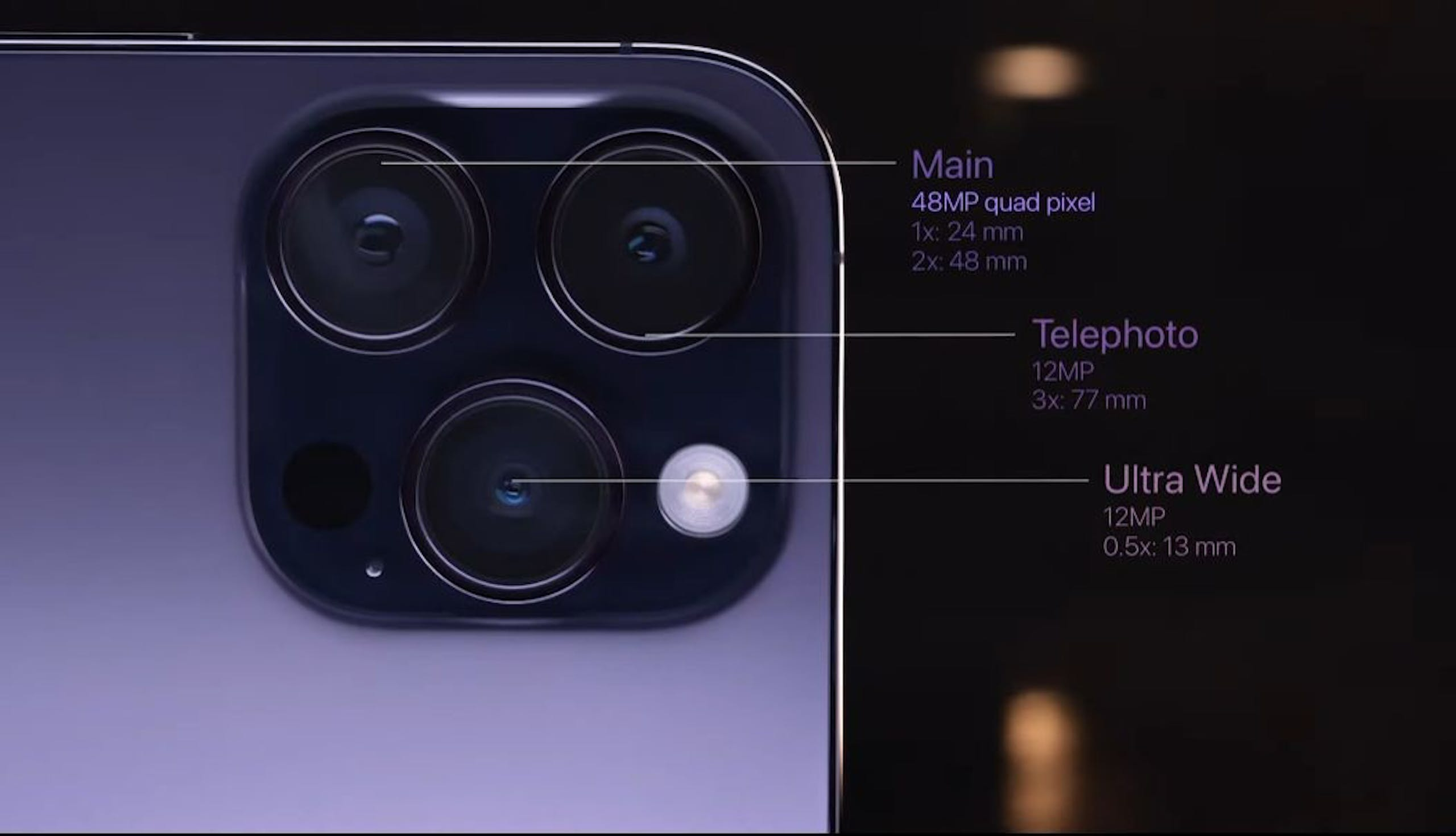 (iPhone14Pro為蘋果首次加入4800萬畫素鏡頭的手機,圖片來源:Apple。)