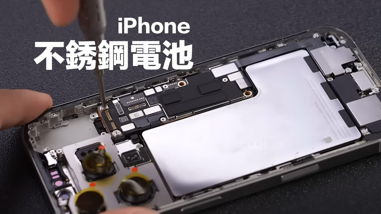 (iPhone16Pro所使用的不鏽鋼電池,圖片來源:瘋先生。)