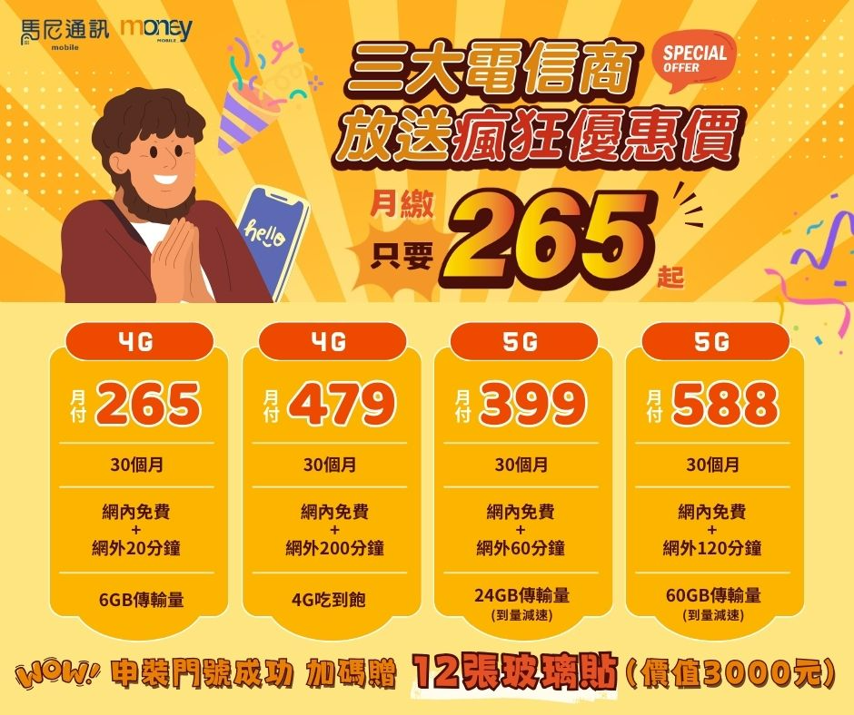 你沒有看錯!不只方案價格便宜,申辦門號成功,更加碼贈送12張玻璃保護貼,價值高達3000元!無論是4G網路的擁護者、想體驗5G飆速的玩家,或是擁有通話需求的業務人員,這裡絕對有滿足你的方案優惠!