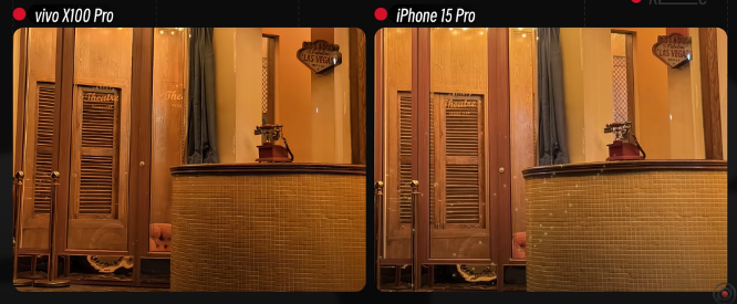 vivo X100 Pro搭載了防眩光的蔡司鏡頭 iPhone 15Pro 明顯鬼影比 vivo X100 Pro 多一些