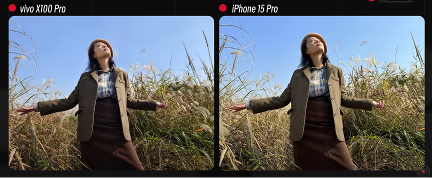 比較 vivo X100 Pro 和 iPhone 15Pro 的拍照效果 vivo X100 Pro 明顯比較柔和自然