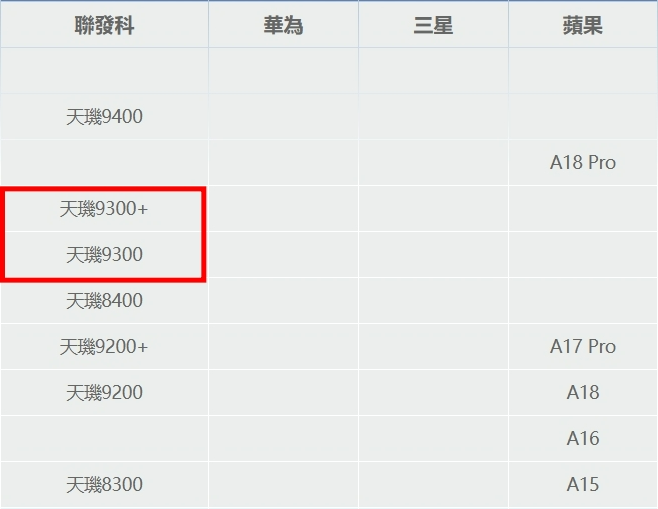 (聯發科推出的天璣9300系列皆優於蘋果的A18晶片。)