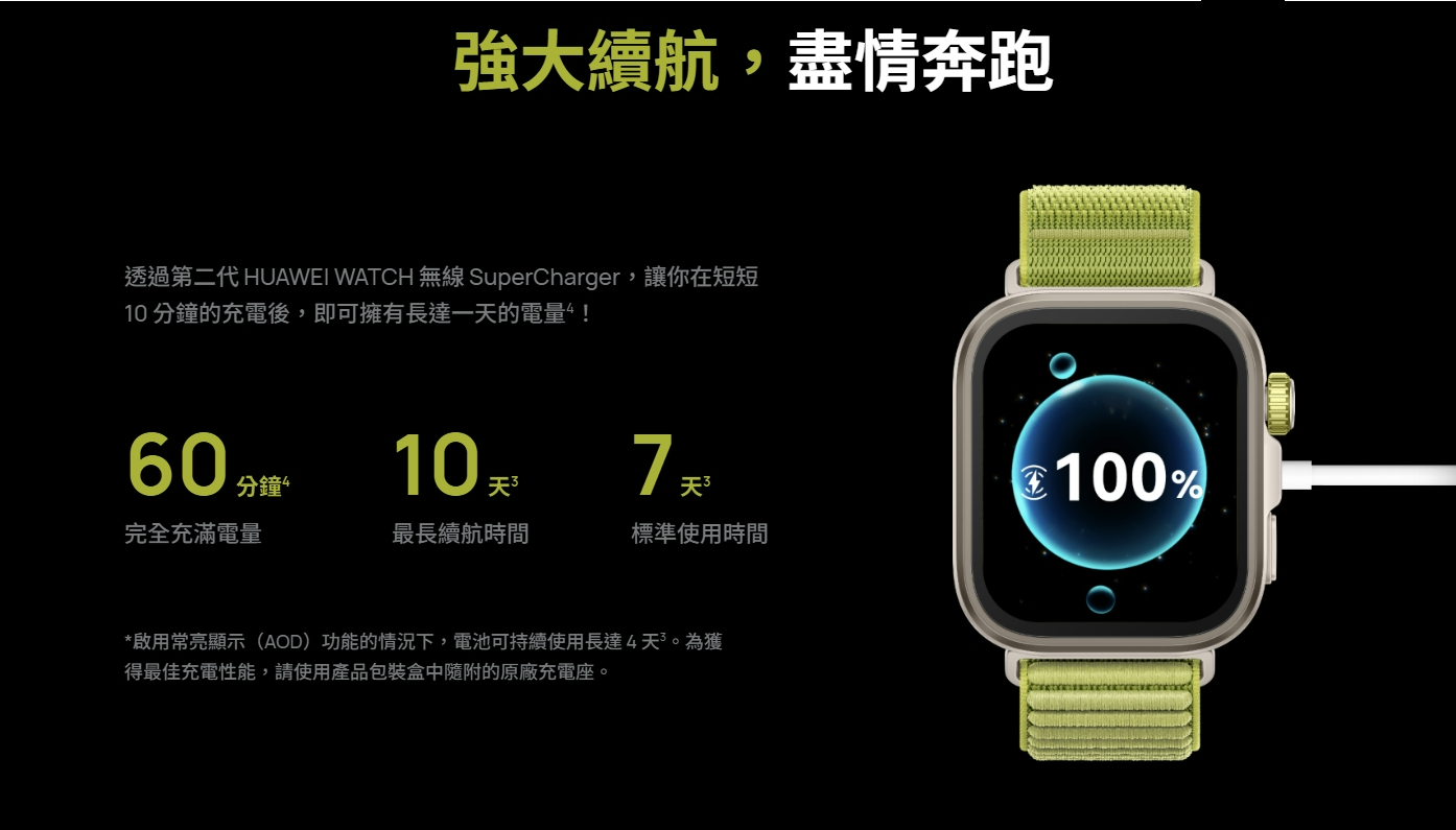 (官方宣稱Fit4 Pro最長續航可達10天,圖片來源:華為。)