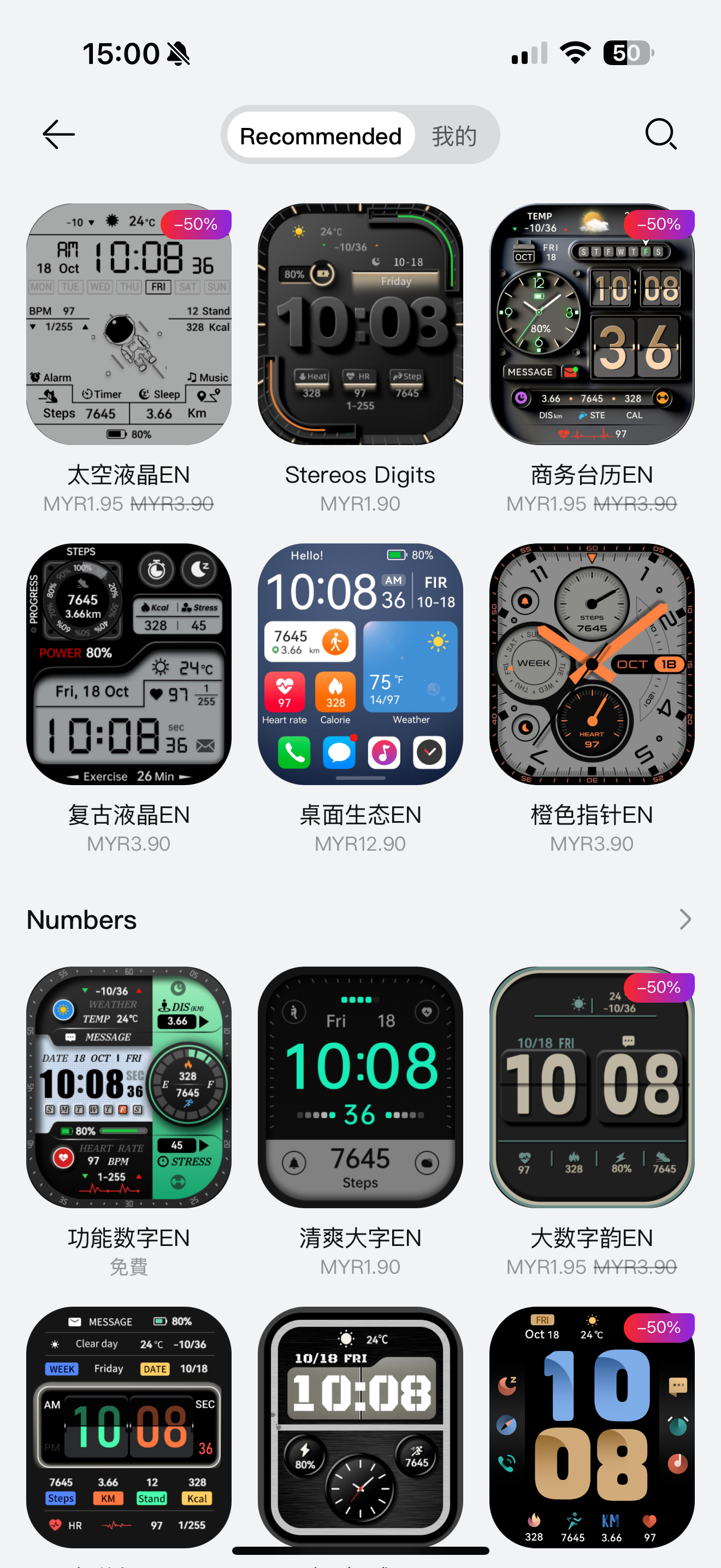 (多款錶面可供選擇,除付費外也有多款免費版。)