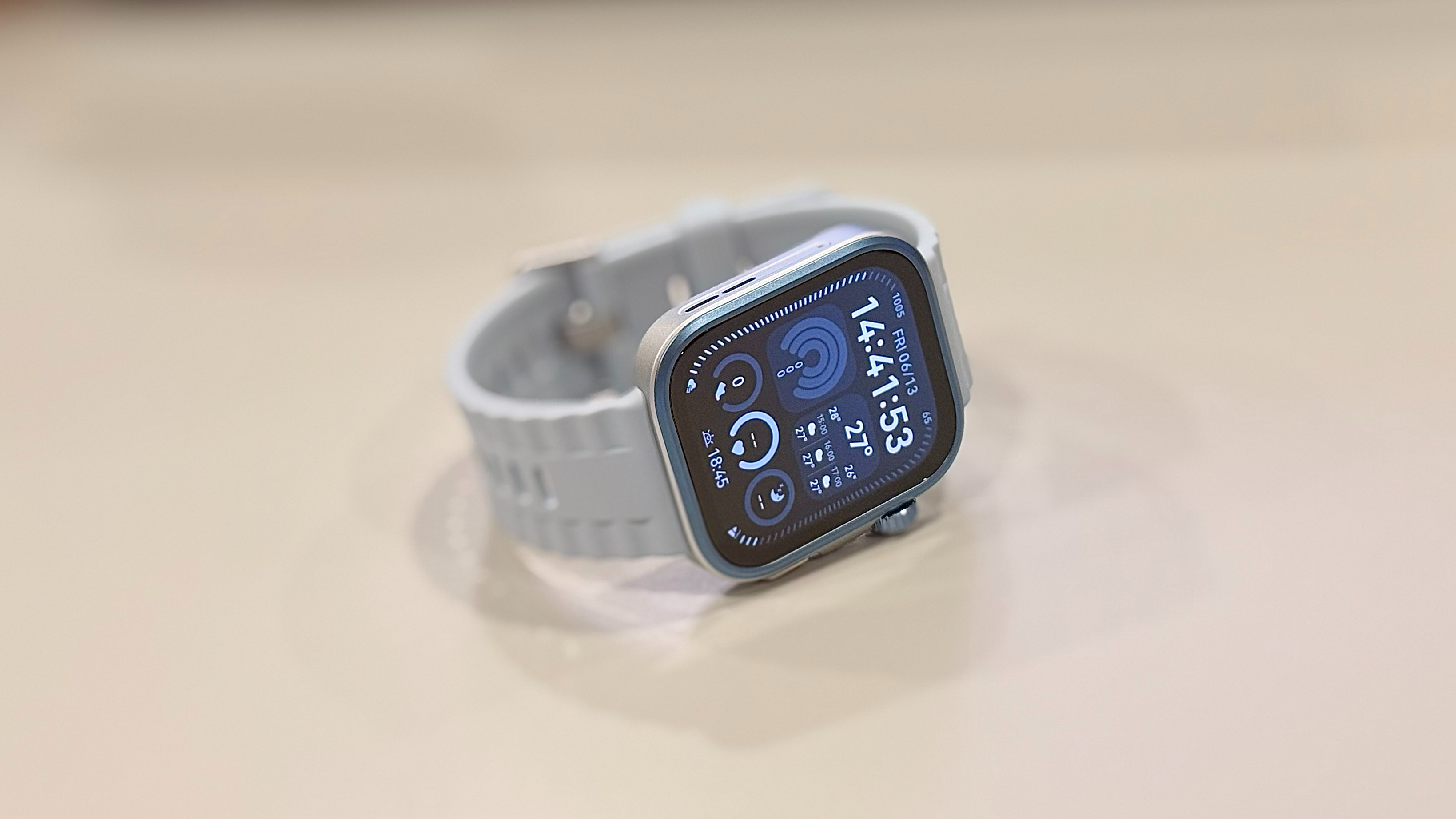 Fit4 Pro 採用與上代相同的方形錶身設計,但這次 Pro 款升級為藍寶石玻璃鏡面,且在錶面四周還有一圈鈦合金錶圈,整體質感與耐用度都有明顯提升。