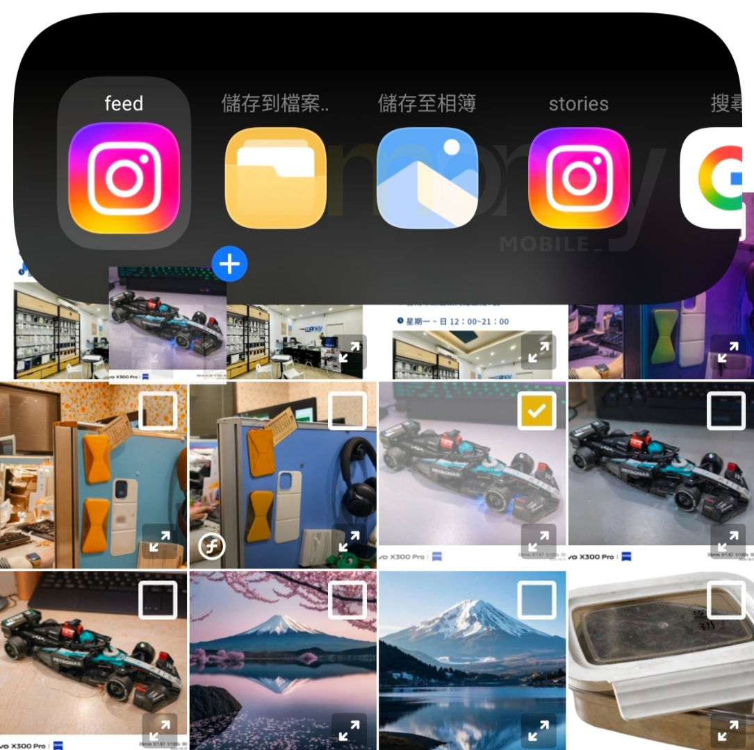 (選取圖片長按,也能選擇APP一鍵分享照片。)
