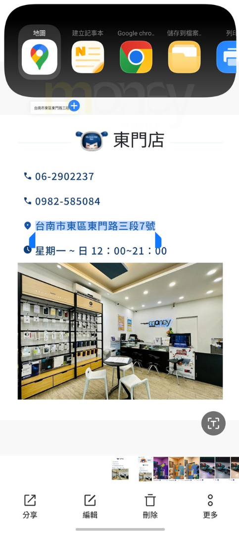 (選取訊息或圖片內的地址長按即可拖拉至原子島一鍵導航。)