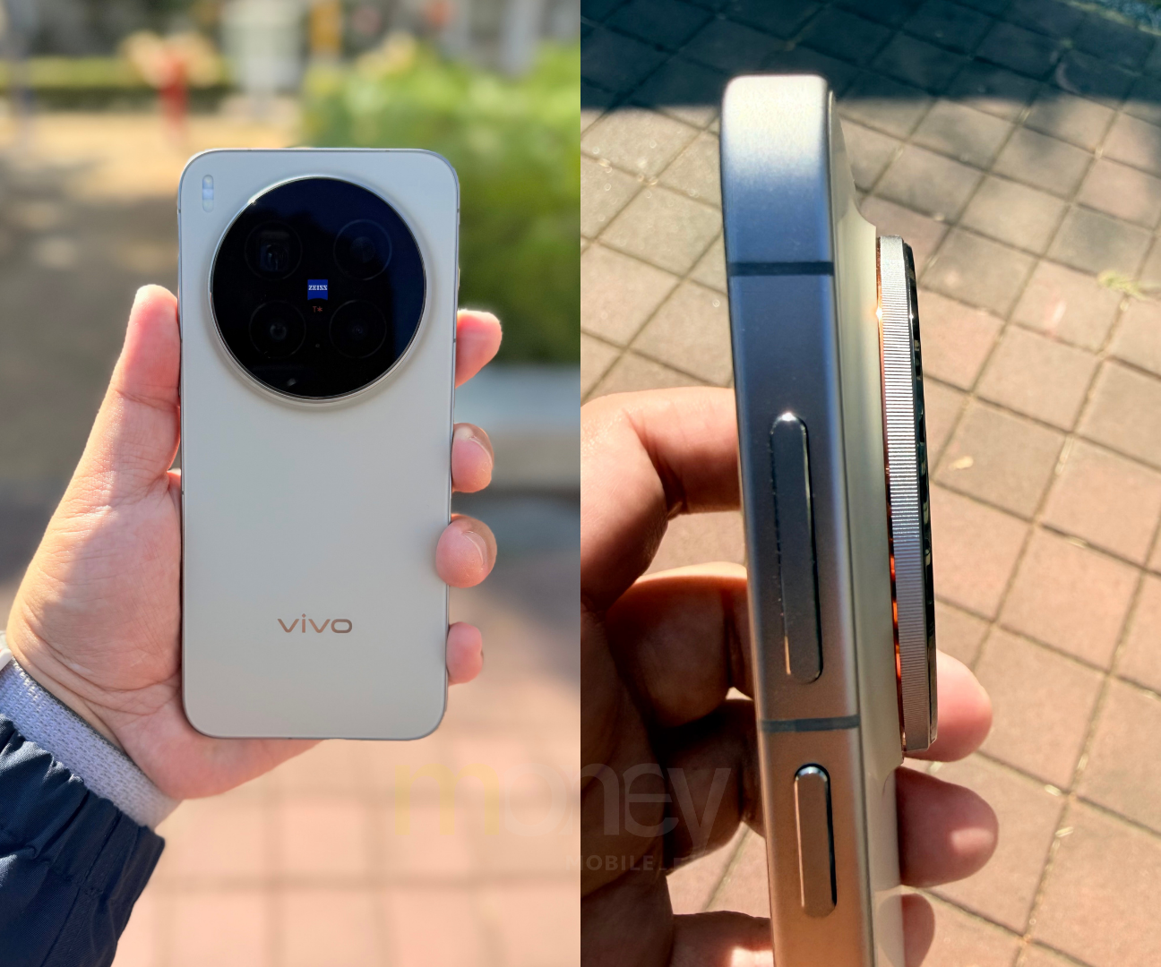 X300 Pro的外觀設計採用了平面螢幕,讓上一代用戶詬病的曲面難貼保護貼這項問題得以改善,另外全機的重量配比相當平衡,握持手感很舒服,不用因為鏡頭模組過大導致頭重腳輕。另外鏡頭邊框有一圈銅色飾條,是內斂低調的巧思,正看完全看不出來,不過一旦從側邊就能看見那一抹橘色光澤。