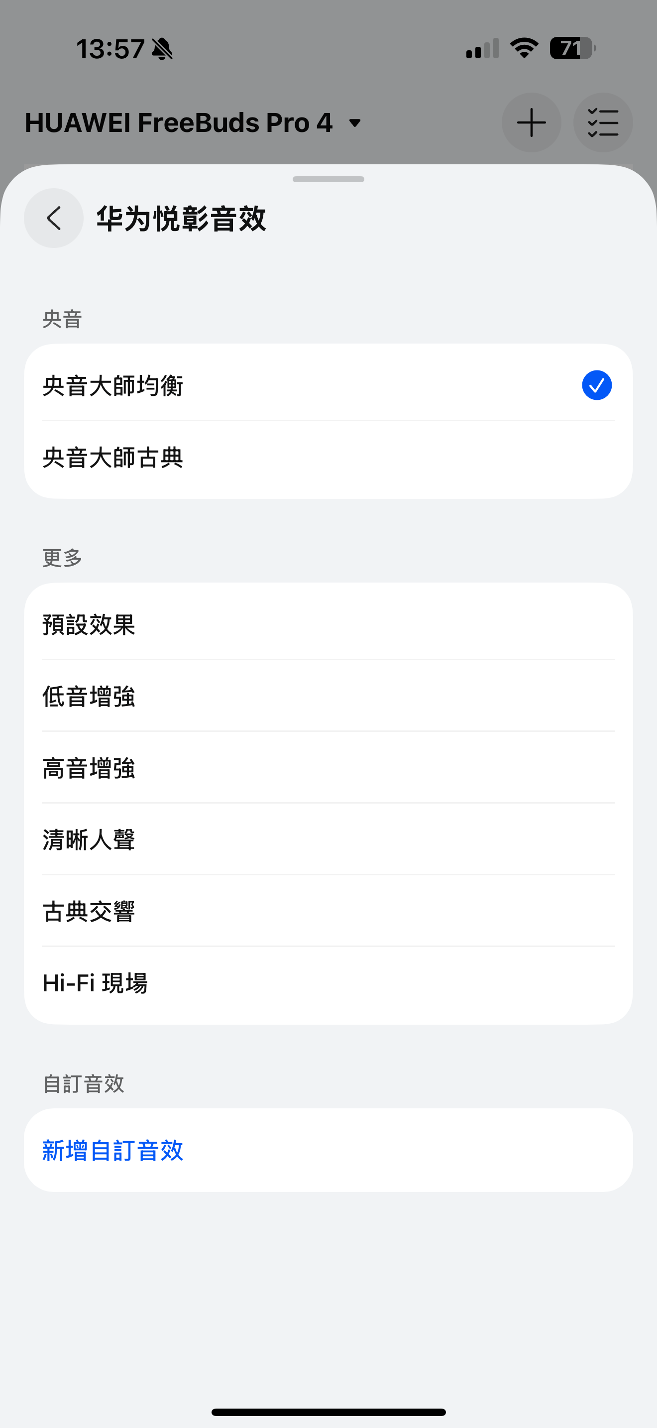 (華為也有針對耳機EQ提供多組音效,也可自訂調整,圖片來源:華為。)