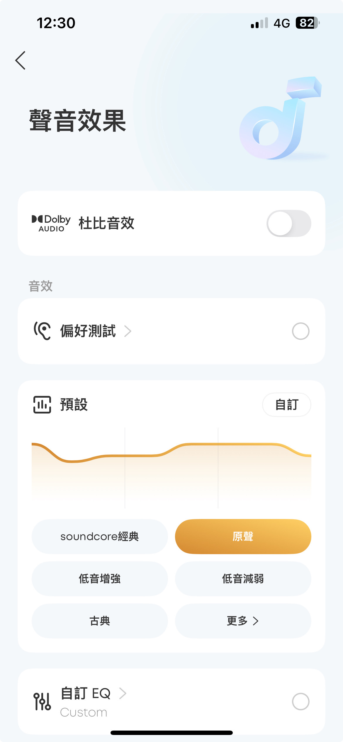 (soundcoreAPP有內建的EQ調整,圖片來源:soundcore。)