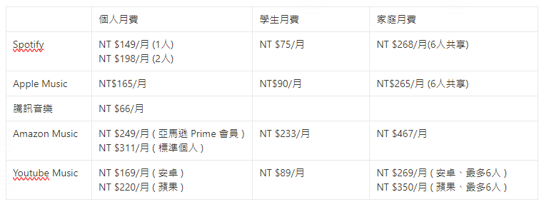 小編幫你整理了前幾大市佔音樂串流平台的比較🤩