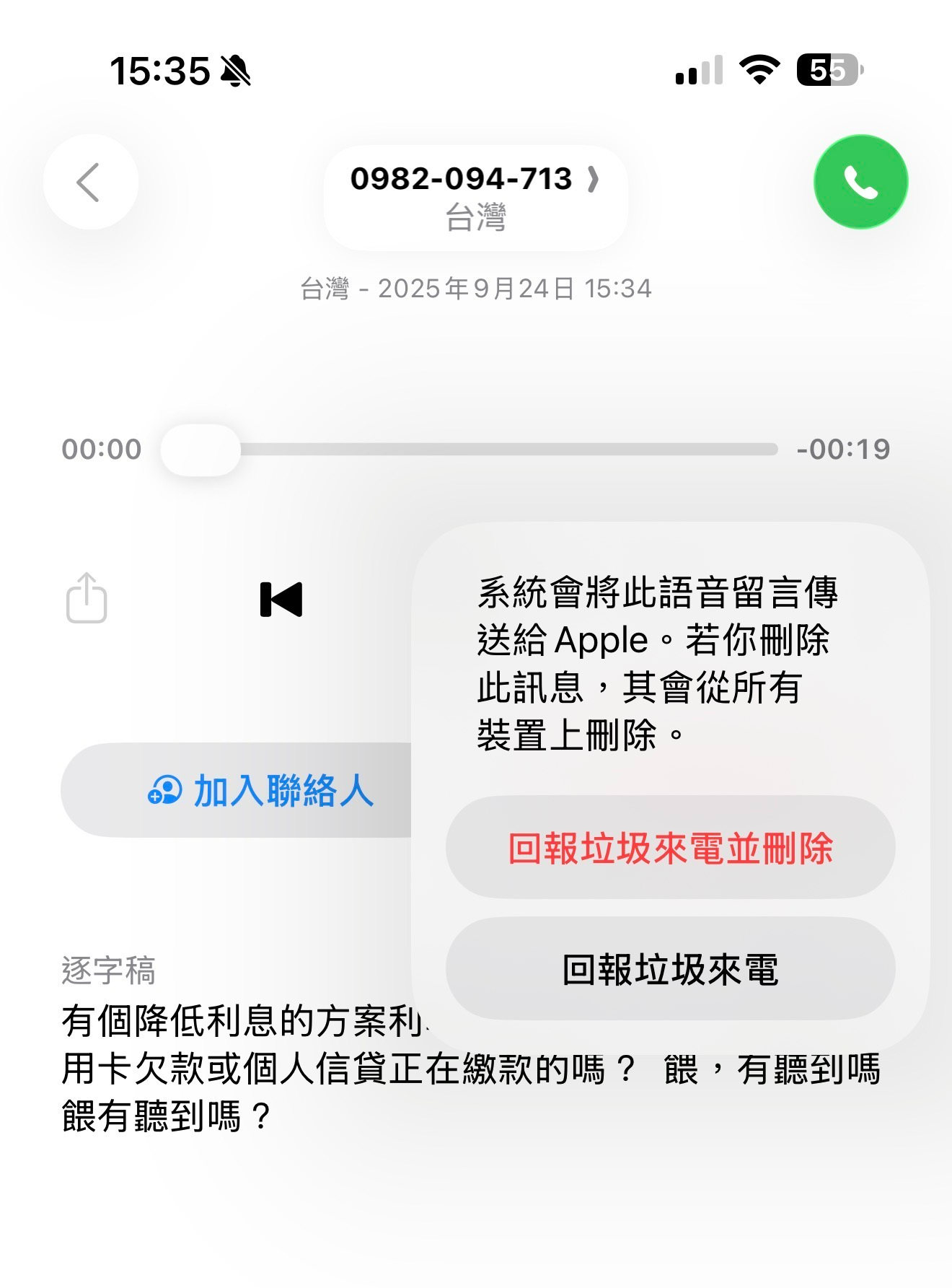 (通話過濾功能會先問來電者意圖,如有疑慮用戶也可以通報為垃圾來電。)