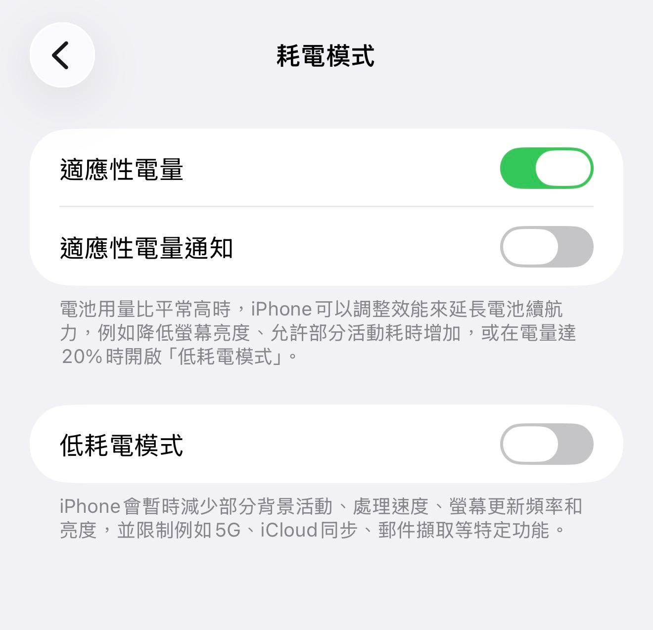 適應性電量是 iOS 26.1 繁中版 Apple Intelligence 的電源管理功能,AI 動態調整電池使用,延長 iPhone 續航,解決 iOS 26 電池耗電災情。