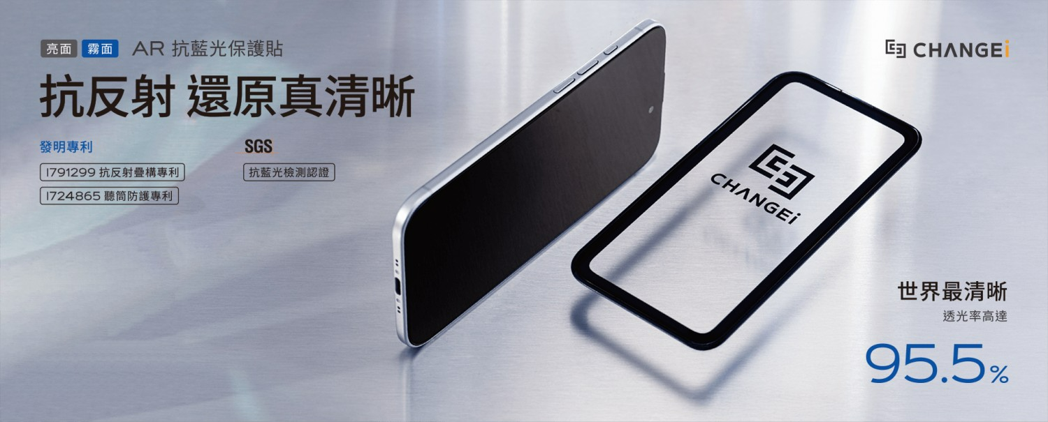 | 螢幕貼 | CHANGEi AR | 聽筒防水專利 + AR 塗層 | NT$1,580 | |