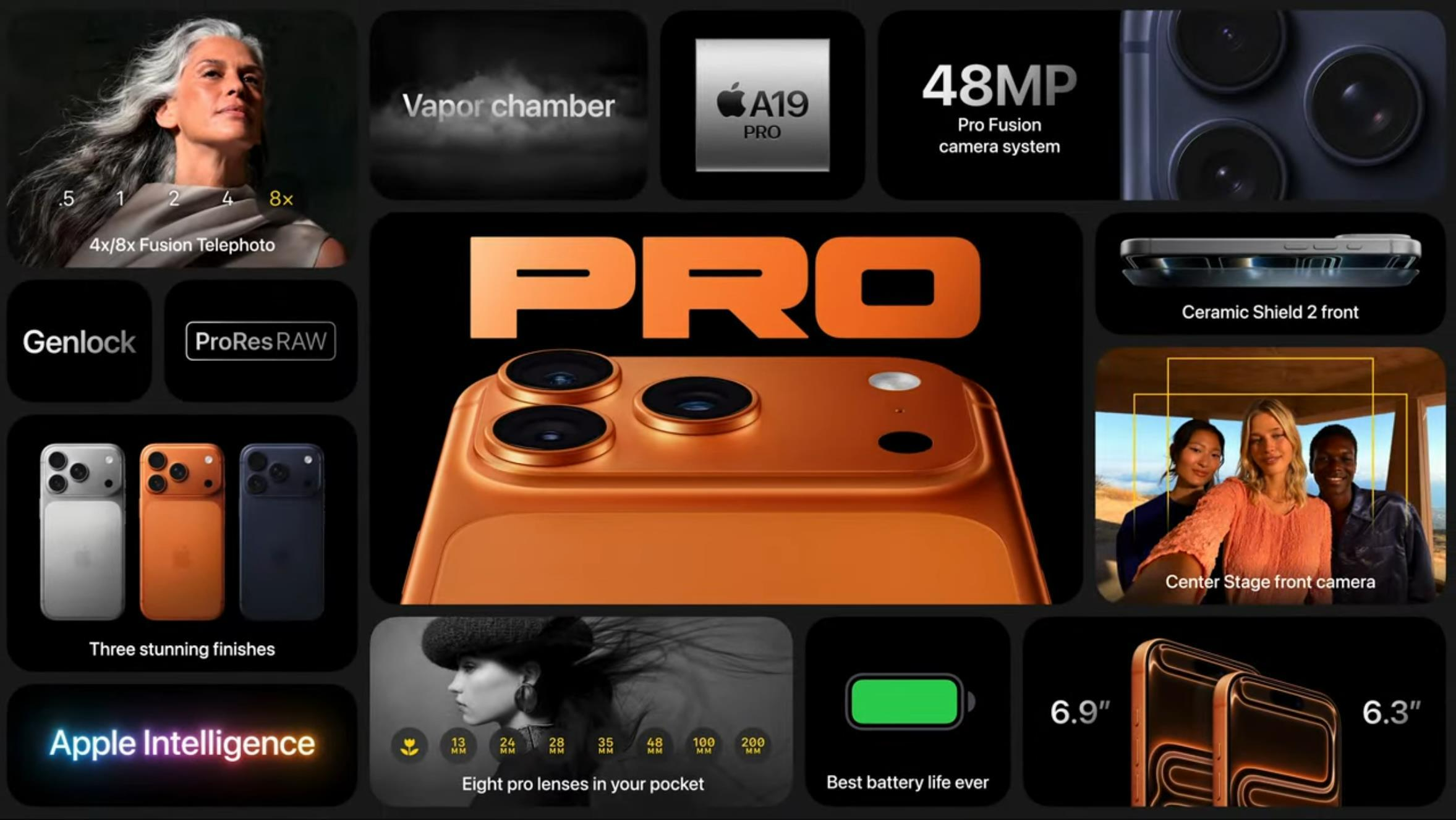 新增更強的長焦,夜拍更清晰,支援 ProRAW、ProRes。
