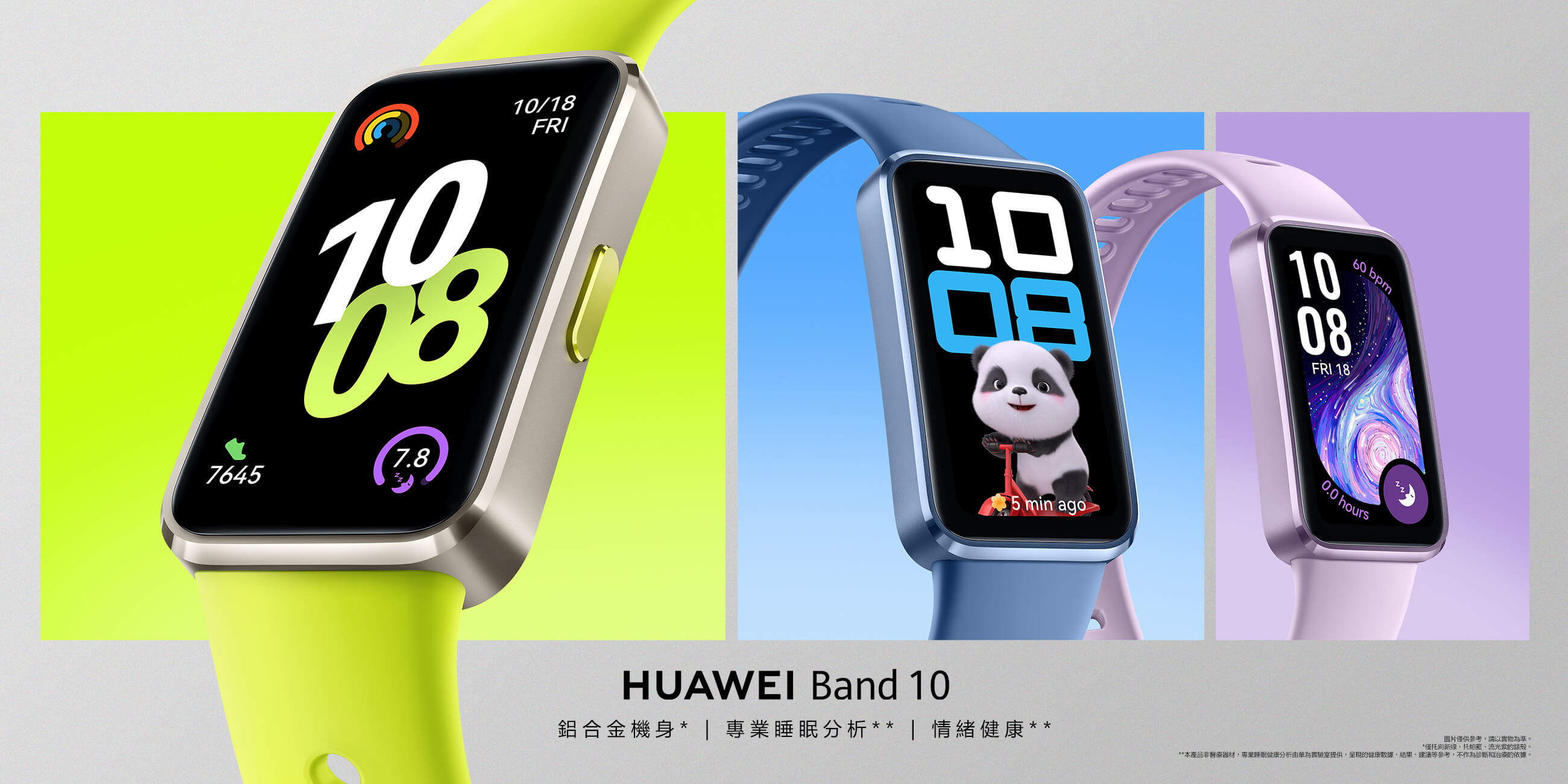 (華為今年推出Band10,採用氟橡膠錶帶,主打健康監測,圖片來源:華為。)