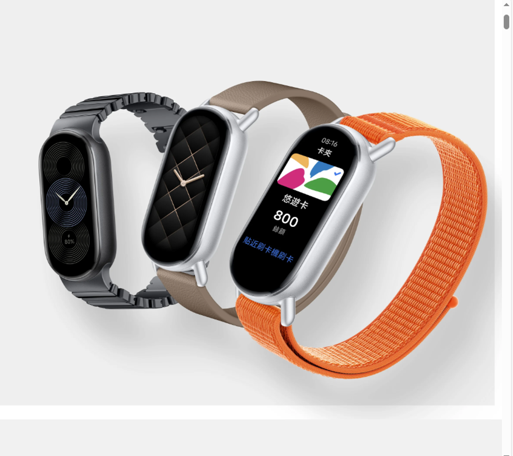 (小米手環10於上月登場,並採用四邊等寬螢幕,圖片來源:小米。)