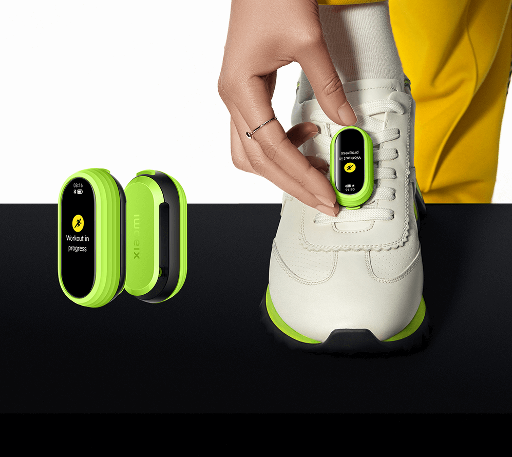 (使用不同配件也可將小米手環變成跑步豆夾在鞋子上,圖片來源:小米。)
