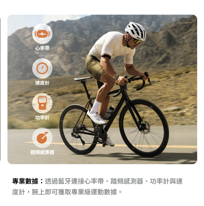 支援全天候心率追蹤,準確率高達 99%,即使在運動中也能即時反饋。血氧監測功能有助於高海拔或呼吸系統問題的用戶。