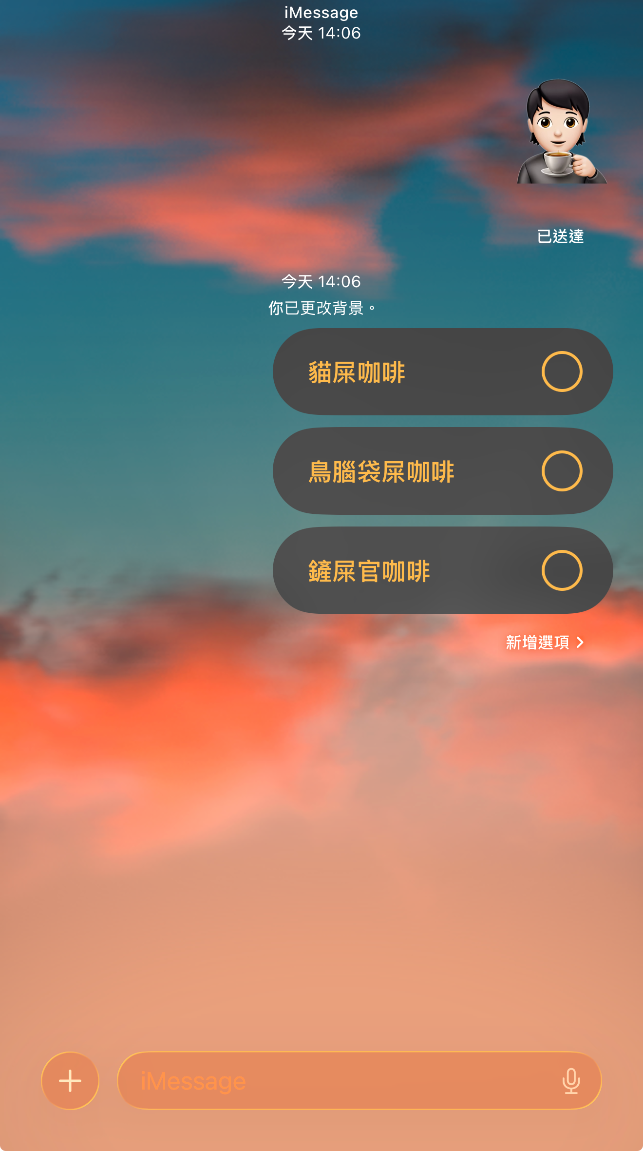 (ios26在imessage新增多樣性的聊天室背景設定,讓用戶能更自由選擇。)