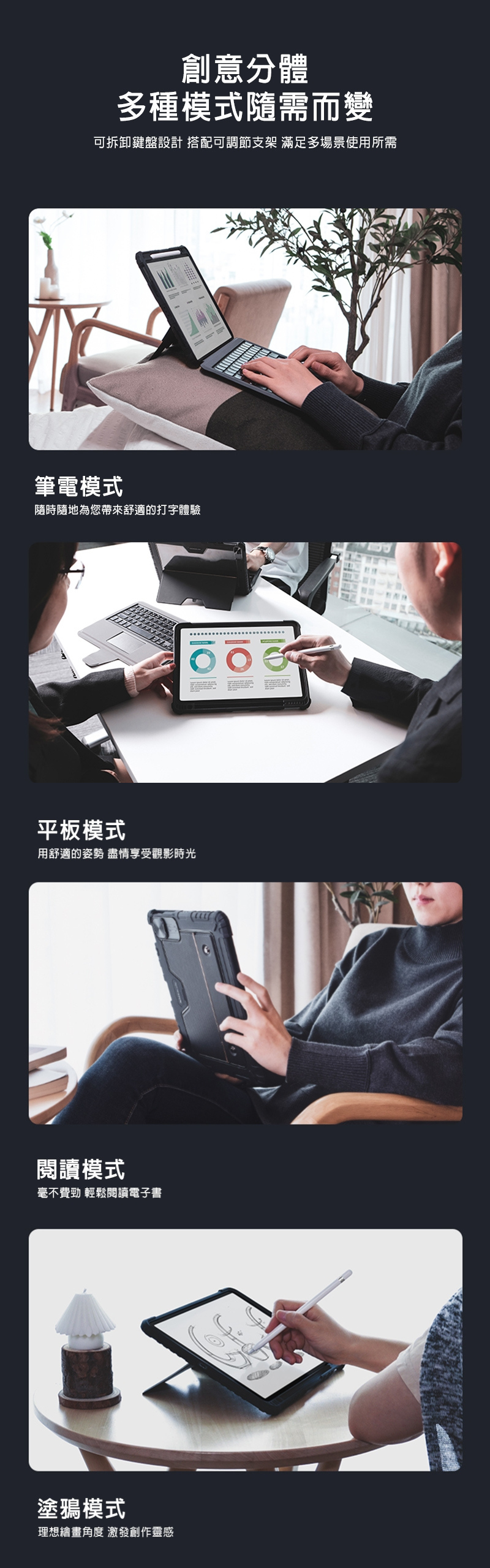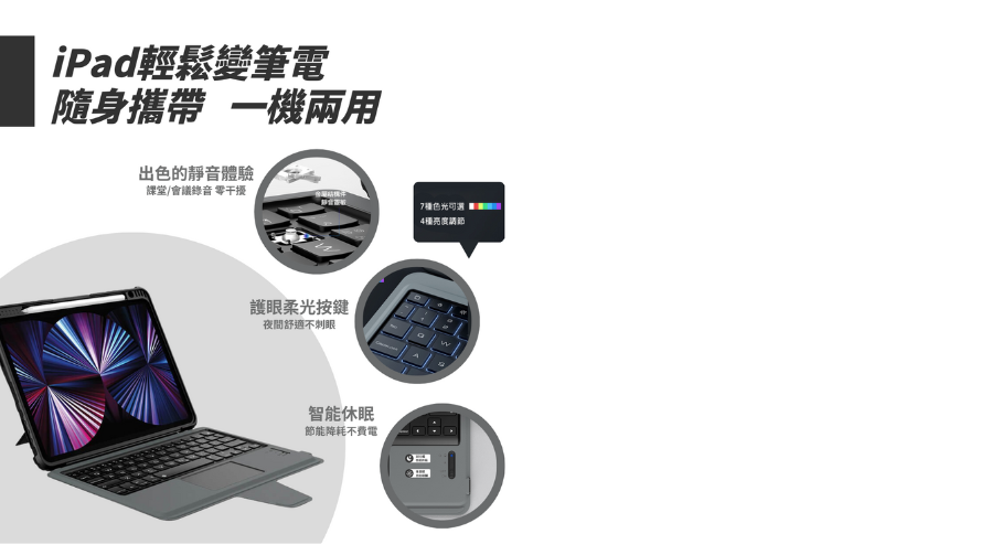 這款鍵盤殼不只是外殼,更是你的平板秒變超方便的筆記型電腦的必備利器。擁有了它,你可以隨時隨地搞定文書處理、閱讀文件,還能在旅途中輕鬆享受娛樂。不再只是單純的平板,而是一台辦公、娛樂兩不誤的多功能利器。